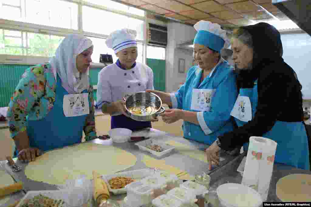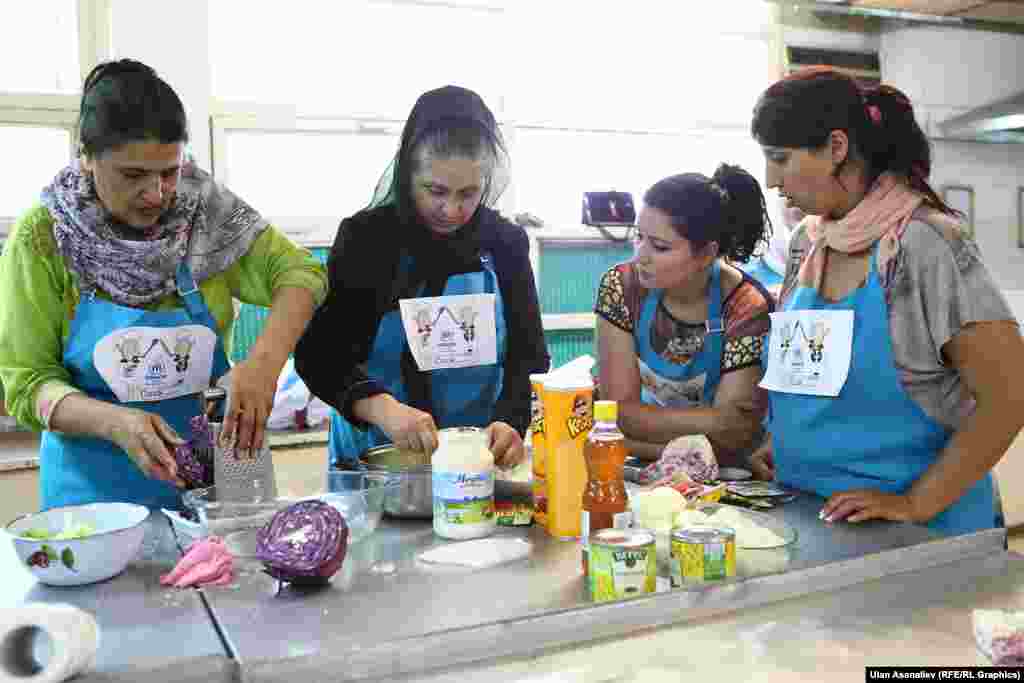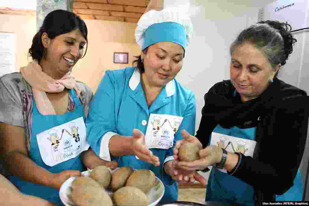 20 июня - Всемирный День беженцев, который отмечается во всем мире. Сегодня женщины-беженки в Кыргызстане приняли участие в кулинарном мастер классе в лицее №18 в Бишкеке. Цель мастер класса - культурный обмен в приготовлении национальных блюд кыргызской и афганской кухни. Участники приготовили оромо, куриный суп и афганский наргиз-кебап.