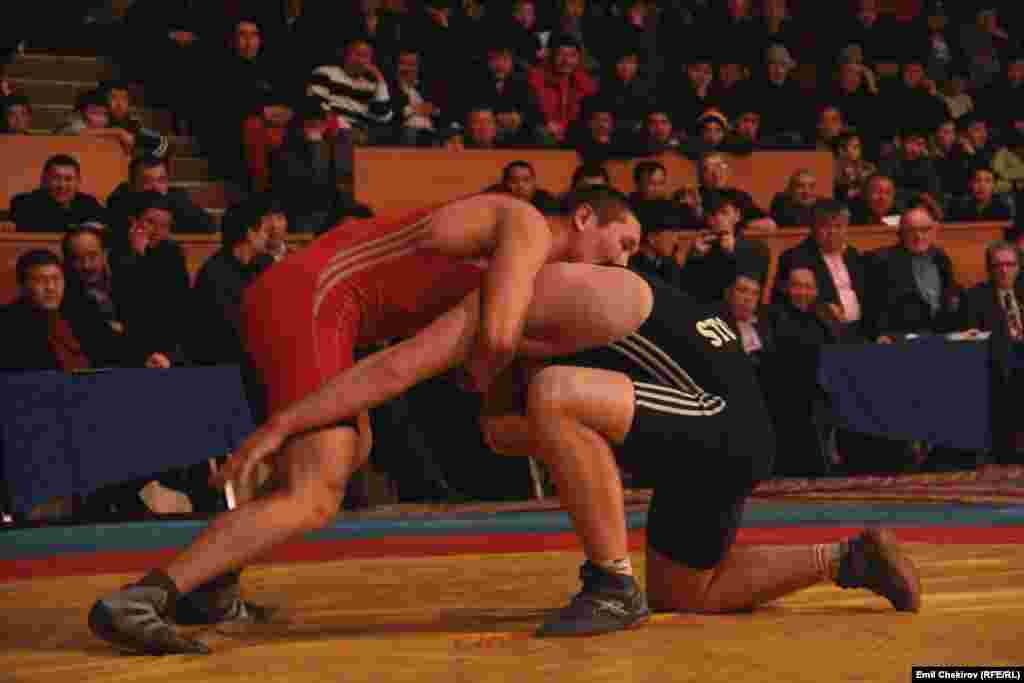 В Бишкеке во Дворце спорта имени Кожомкула прошел республиканский чемпионат по греко-римской борьбе.
