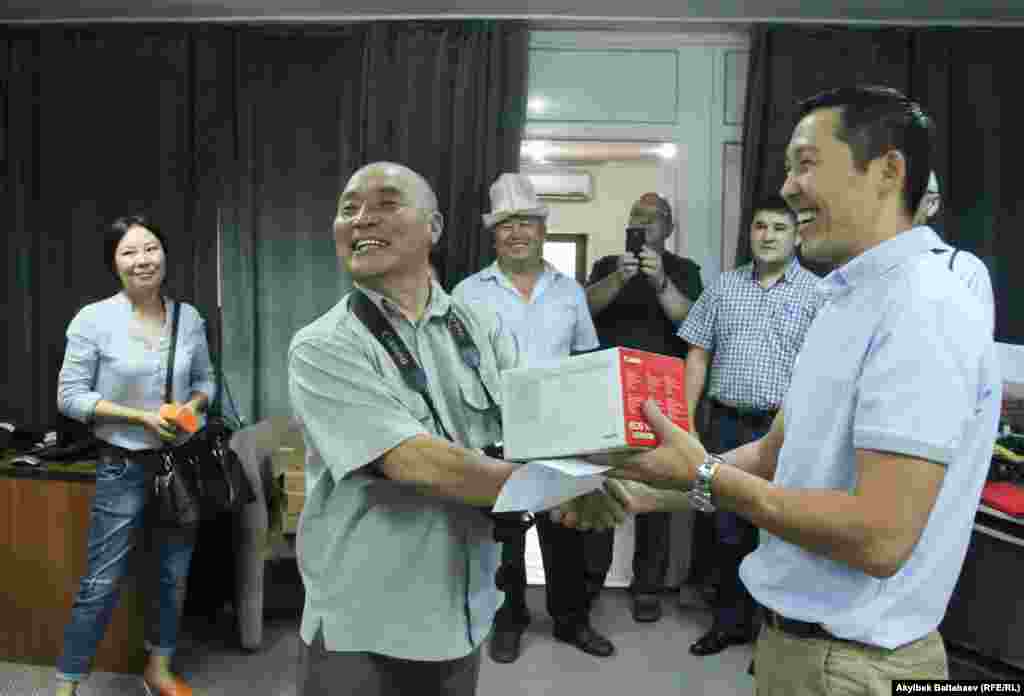 Нурмамат ажы Сапарбаев не смог приехать на награждение. Но вместо него приз получила его дочь.