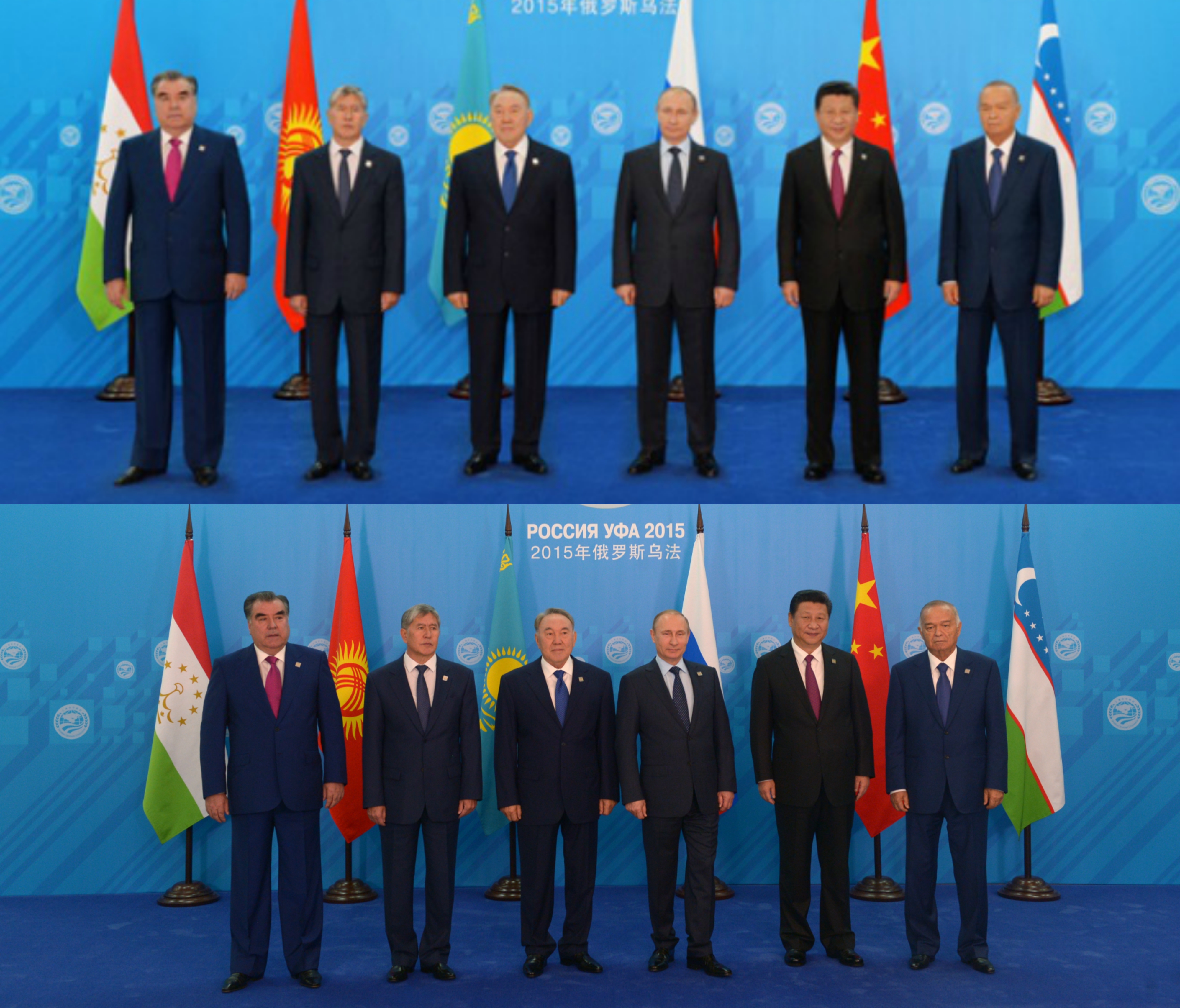 На ней Ислам Каримов (второй справа), рост которого был равен примерно 170-172 сантиметрам, был почти одного роста с Виктором Януковичем (первый справа, рост примерно 190-193 см) и Эмомали Рахмоном (третий справа, 180-183 см).
