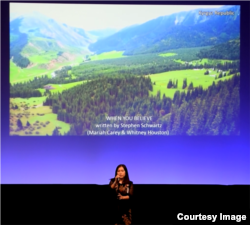 В великолепном исполнении нашей соотечественницы Гулбарчын Акбековой была исполнена песня на английском языке под сопровождение живописного видеоролика о величии гор Кыргызстана и голубом Иссык-Куле.