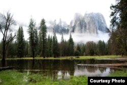 Когда в соцсетях увидела, что из соседних кампусов собираются в Йосемит, сразу связалась с ними, так как они собирались арендовать машину, и так можно было присоединиться. Йосе́митский национа́льный па́рк расположен в штате Калифорния на западных склонах горного хребта Сьерра-Невада. Славится своими водопадами и скалами и деревьями секвоей. Около 89% парка считается зоной дикой природы. Был с самого начала задуман именно как национальный парк. Один из первых защитников идеи заповедников был, можно сказать, основатель парка Джон Мьюр. Лед выступил в роли главного скульптора, изваявшего разные персонажи из камня. Йосемитская долина встретила нас ранним мартовским утром туманом и дождем, но уже к вечеру небо прояснилось и мы увидели другой Йосемит, молчаливый и ясный. Долина окружена вечнозелеными лесами и гранитными скалами с блестящими рукавами водопадов.