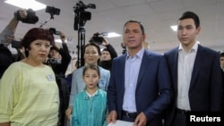 Кандидат в президенты Кыргызстана Омурбек Бабанов со своей семьей на избирательном участке. Бишкек, 15 октября 2017 года.