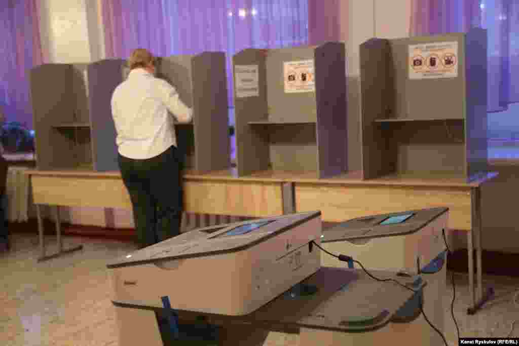 Первые избиратели в этом участке - это члены комиссии и наблюдатели