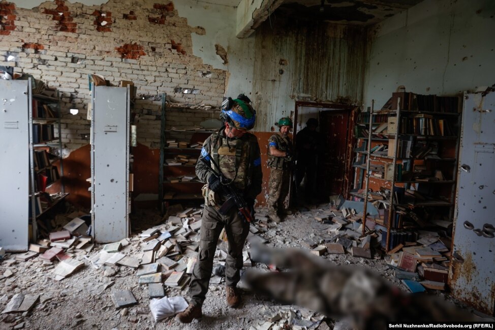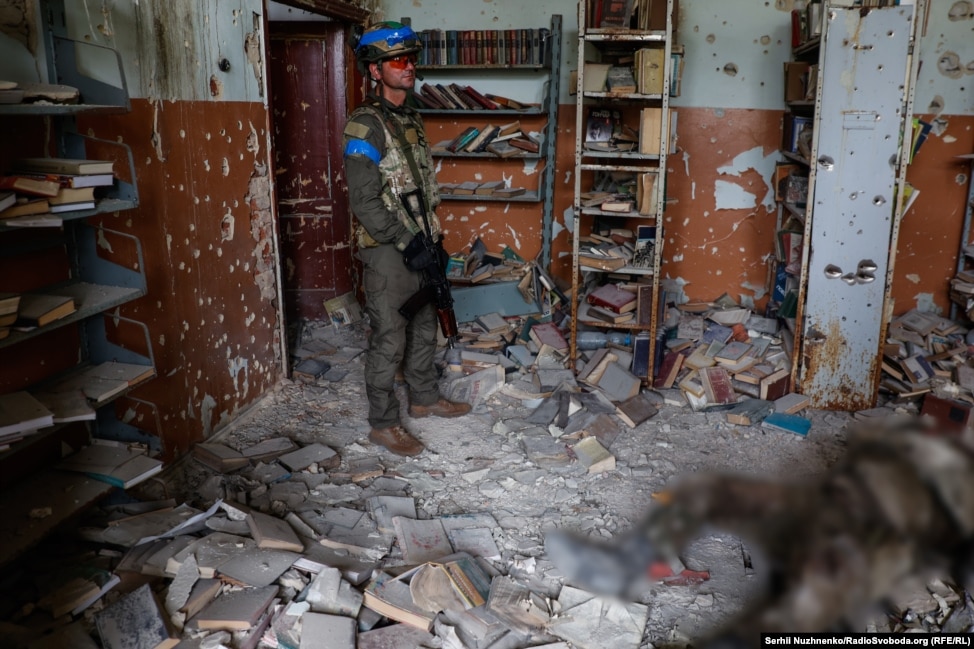 Украинский военный с позывным "Лермонтов" в сельской библиотеке Благодатного