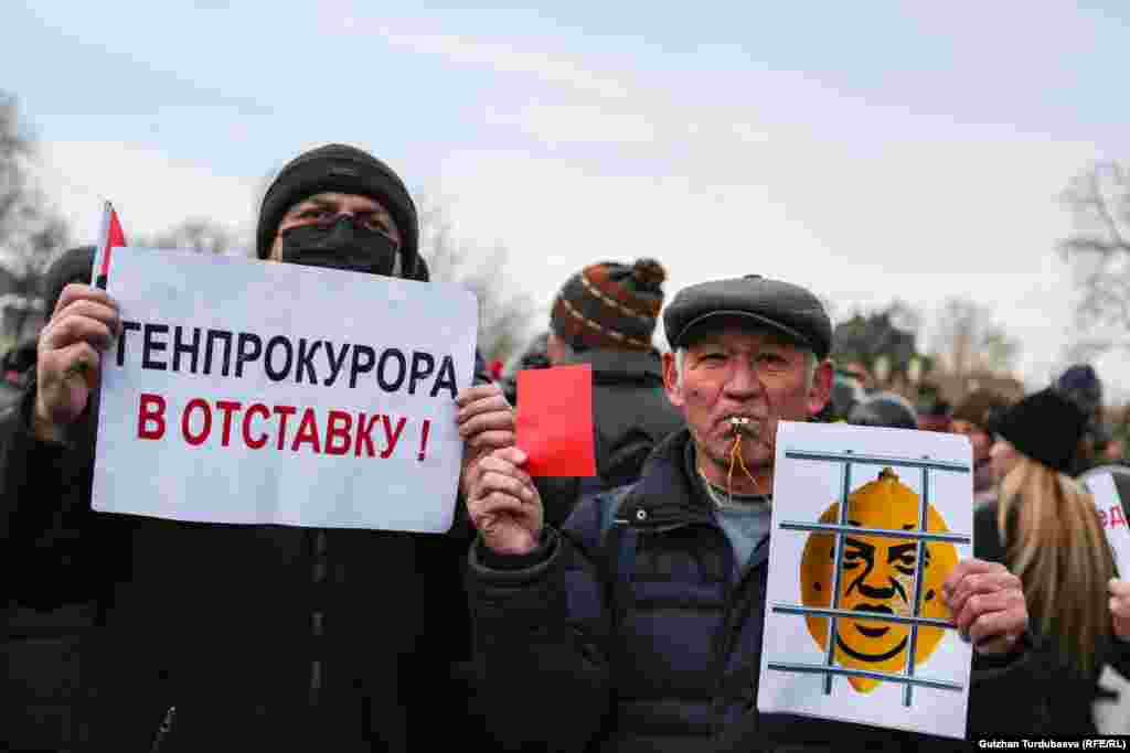Кроме того, организаторы собрали подписи под требованием в адрес президента об отставке генерального прокурора Откурбека Джамшитова за отсутствие реакции на журналистские расследования о коррупционных схемах на таможне.