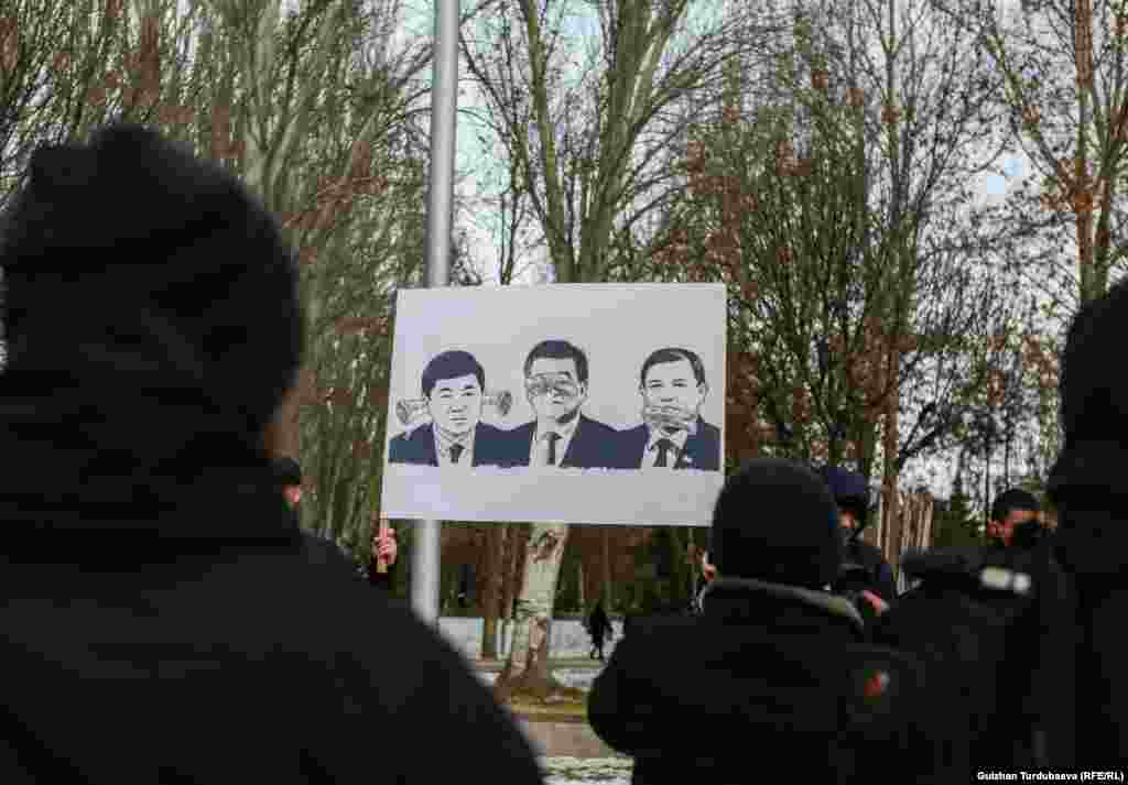 Участники акции потребовали действенных мер в деле борьбы с коррупцией и прекращения давления на свободу слова на фоне иска семьи Матраимовых к СМИ на общую сумму в 60 млн сомов. Они держали в руках транспаранты с соответствующими требованиями.