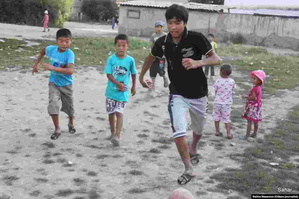 В Оше есть несколько платных футбольных полей для взрослых — час игры 500 сомов. При этом там нет душевых, раздевалок. Только поле, ворота и мяч. Детям по улице Заводской (возле старого кирпичного завода) не нужны такие поля. Они гоняют мяч возле домов, умудряясь не попасть в оконные стекла. На импровизированной детской площадке ни одной карусели, пара молодых осин, остатки не вытоптанной травы и бытовой мусор. Фотографии и текст блогера Сахиры Назаровой (Ош). "Азаттык", Кыргызская служба РСЕ/РС